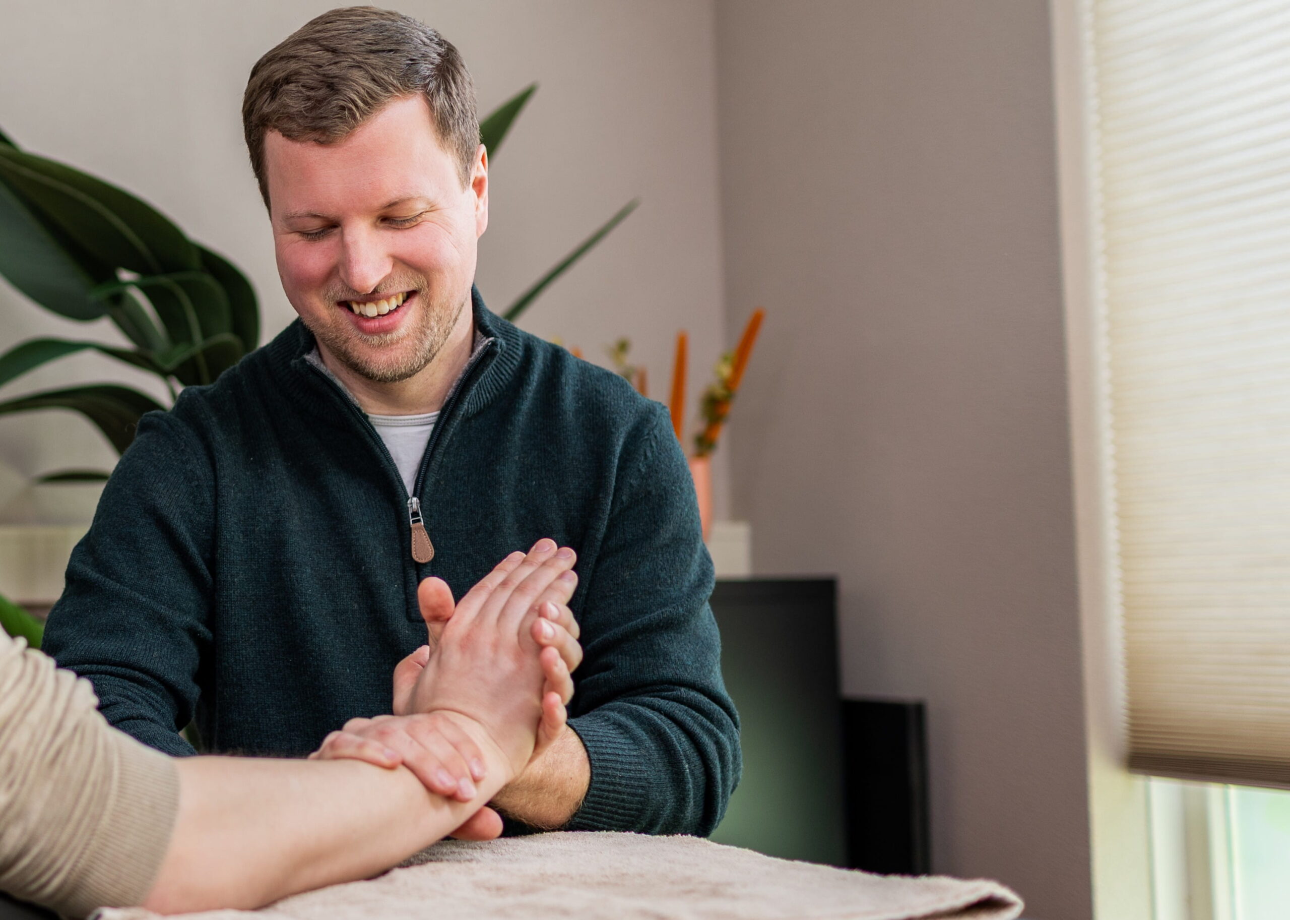 Finn biedt algemene fysiotherapie en is gespecialiseerd in handtherapie bij klachten aan hand, pols en arm. Hij helpt je bij herstel, krachtopbouw en het verbeteren van dagelijkse handelingen.