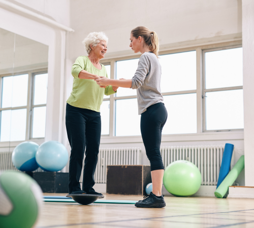 In onze groepstrainingen werk je onder professionele begeleiding aan kracht, conditie en veilig bewegen, in een motiverende en prettige omgeving.